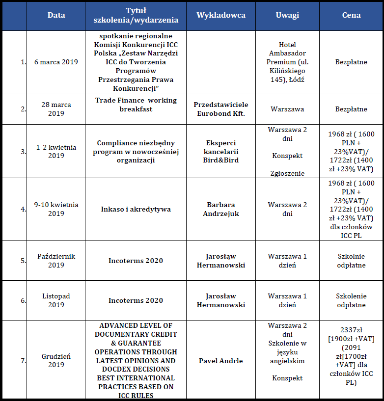 ICC Poland zastrzega sobie prawo odwołania szkolenia lub zmiany jego terminu.